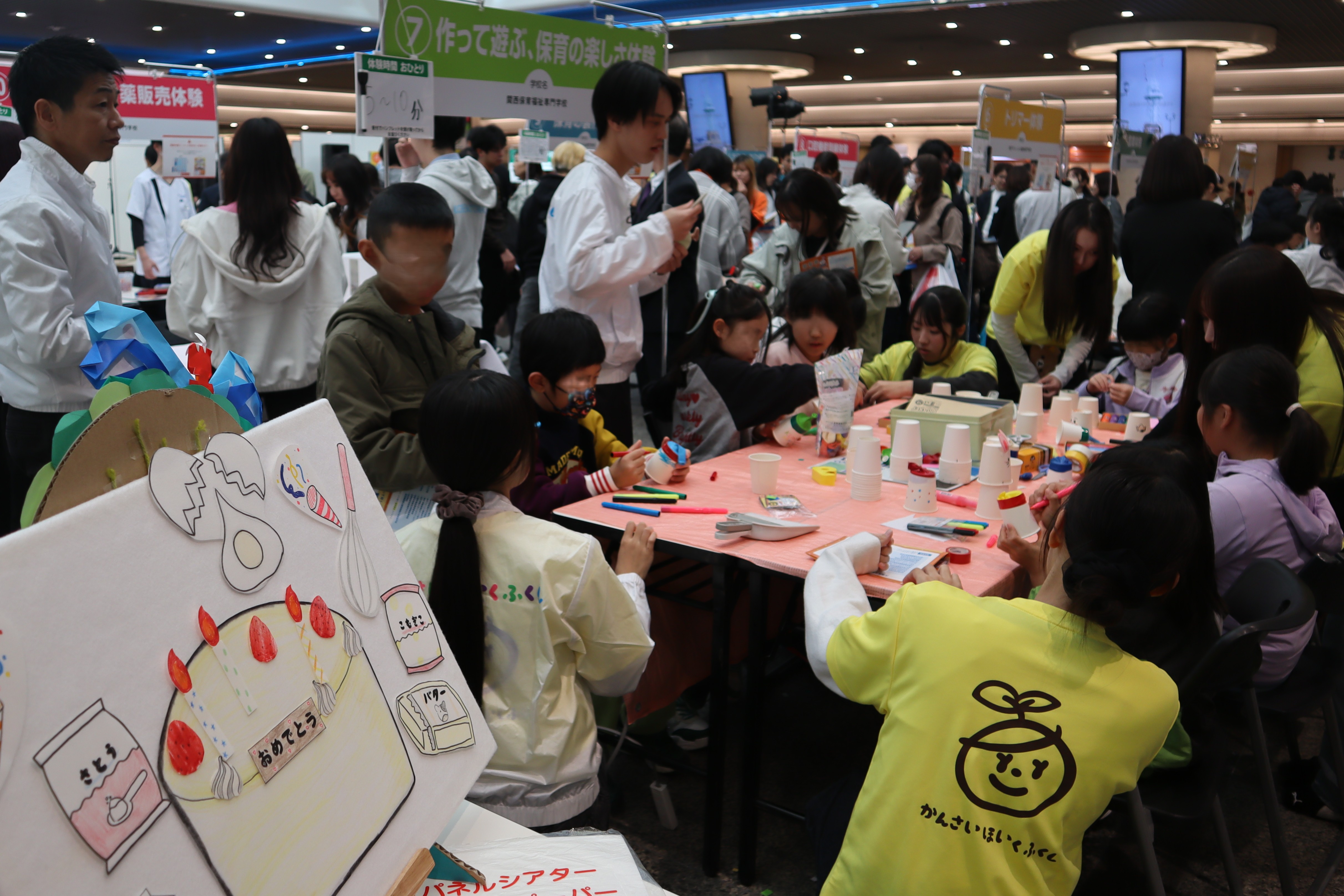ブースでは紙コップで作る工作のワークショップをし、多くの来場者が参加してくださいました。学生さんと子どもたち、ご家族と一緒にとても賑やかに楽しんでくださいました。